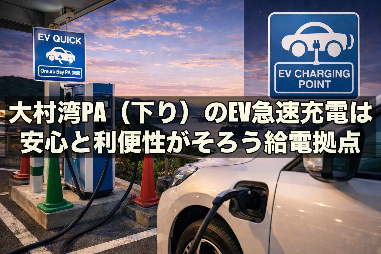 大村湾PA(下り)のEV急速充電は、24時間利用できる2口設置という安心感に加え、設置場所のわかりやすさ、待ちにくさ、周辺施設との使い勝手の良さがそろった充電ポイントです。フル充電を目的にするのではなく、次の区間を走るための「つなぎ」として使うことで、時間も費用も無駄にしにくくなります。